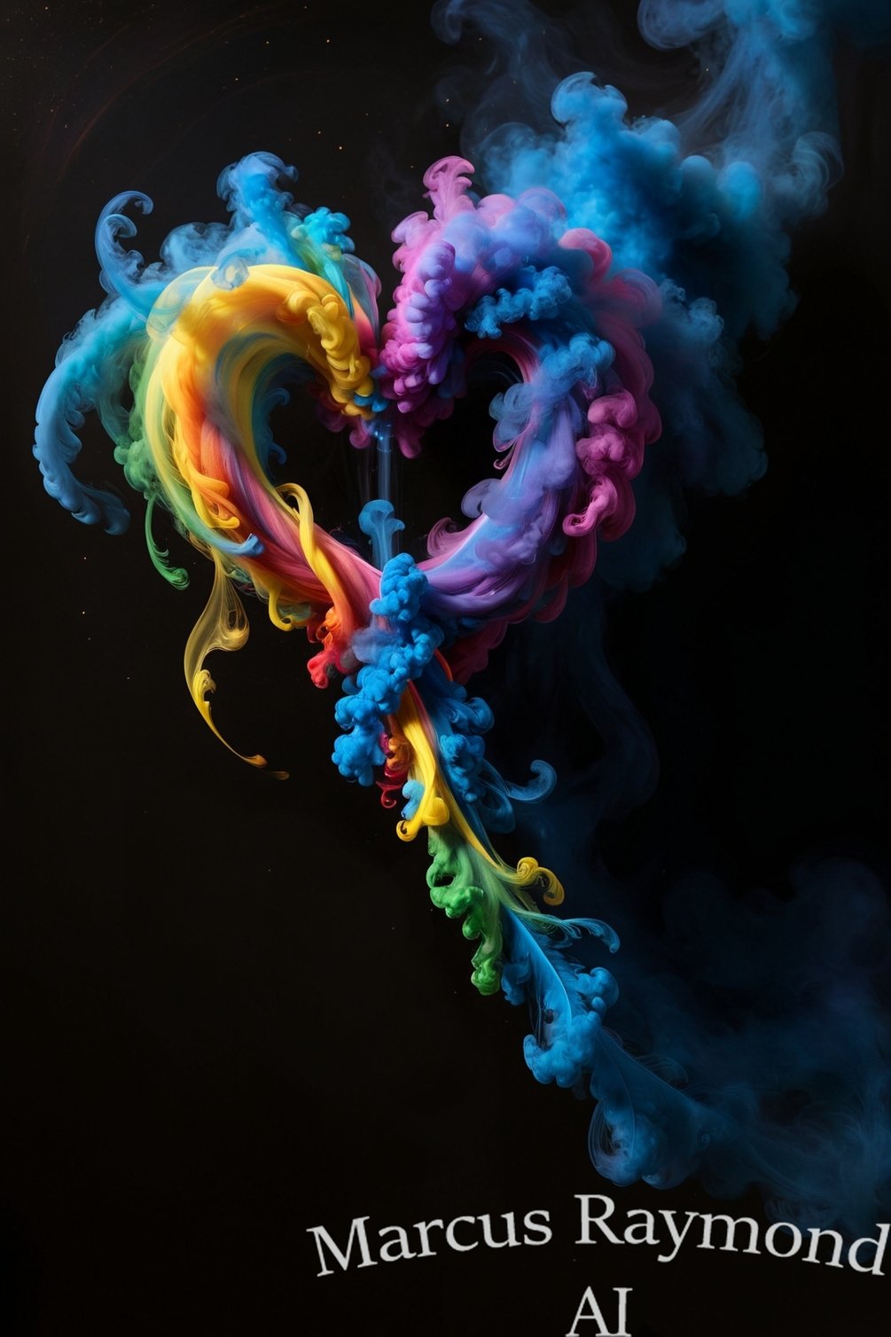 Transform your creative projects with this royalty-free artistic image, featuring a mesmerizing heart-shaped formation made of swirling smoke in vivid hues of blue, yellow, and pink. The floating, vapor-like effect evokes a sense of whimsy and romance, making it an unforgettable visual centrepiece. Perfectly centred within the frame, this captivating image radiates creativity and emotional warmth.